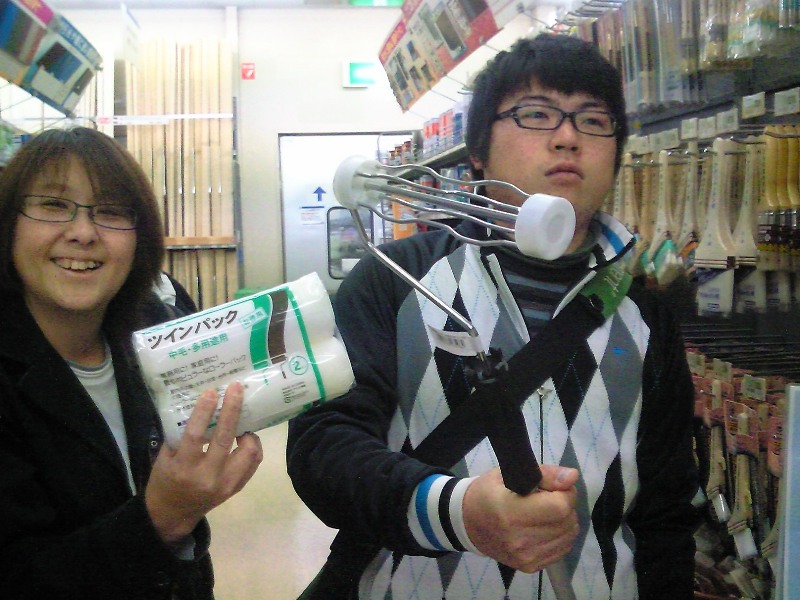 ラクガキバスターズの内容はコチラ♪ ⇒ http://rakugaki.atgj.net/Entry/1/ 参加申し込みは、名前・住所・生年月日をメールしてね♪ ⇒ rakugaki-b@live.jp そう言えば先日、ラクガキバスターズで使用する(であろう) ペンキを塗るためのローラーやユニフォームのつなぎを見てきました その一部始終です こういう買出しとか、下見とか、 学園祭みたいで楽しいよね♪