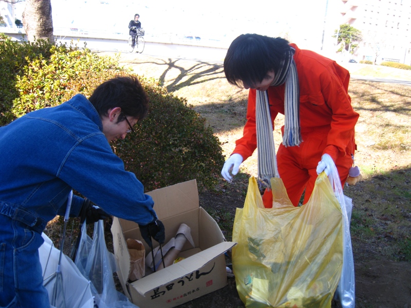 いや、本当は6名だったハズなんですよ。ちょっとルーズなところがあるラクガキバスターズのメンバー、きっと昨日の夜遅くまで起きていたんだろうなぁ。話しても出ない!?(笑)ということで、ムリに起こすのも悪いので、そっとしておき、4人でゴミを拾ってきましたっ。